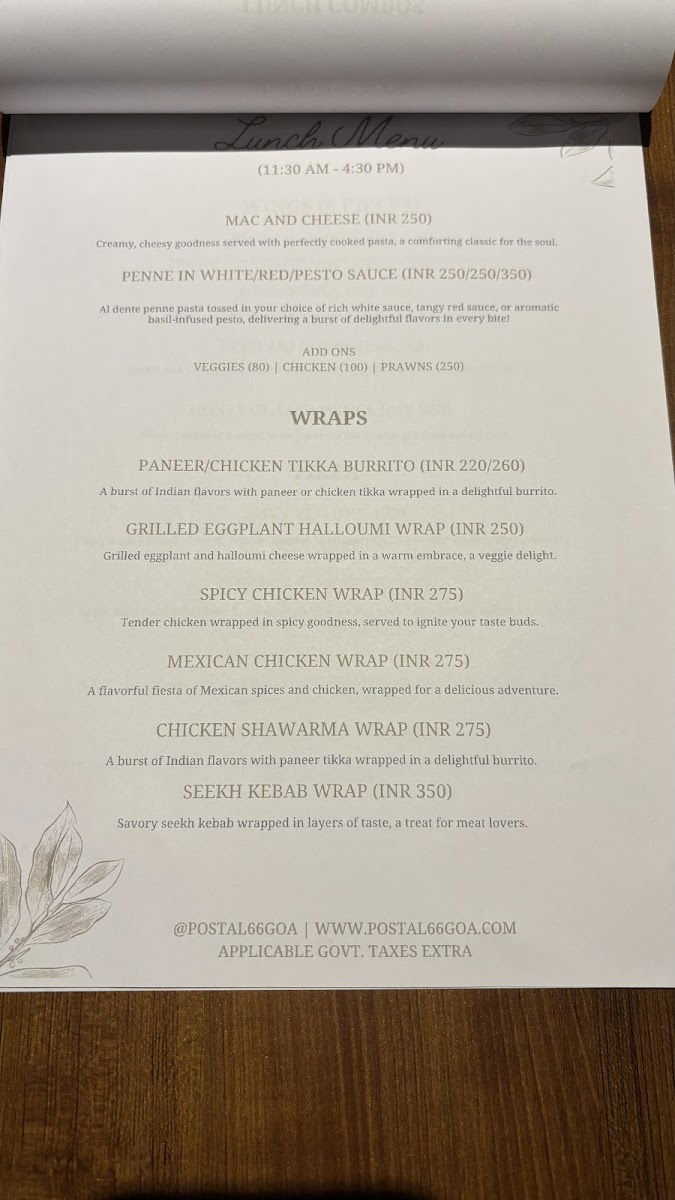 Welcome to Postal 66 Cafe & Lounge, a culinary gem nestled in Porvorim, Goa, just opposite Mall De Goa. This cafe offers a vibrant dining experience with a menu that tantalizes the senses.